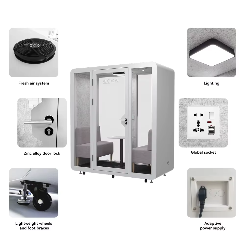 • Quell Silence-Technology: Wir erreichen eine Schallpegeldifferenz von 30–35 dB. Das bedeutet, dass laute Diskussionen im Inneren für Kollegen draußen unhörbar bleiben.